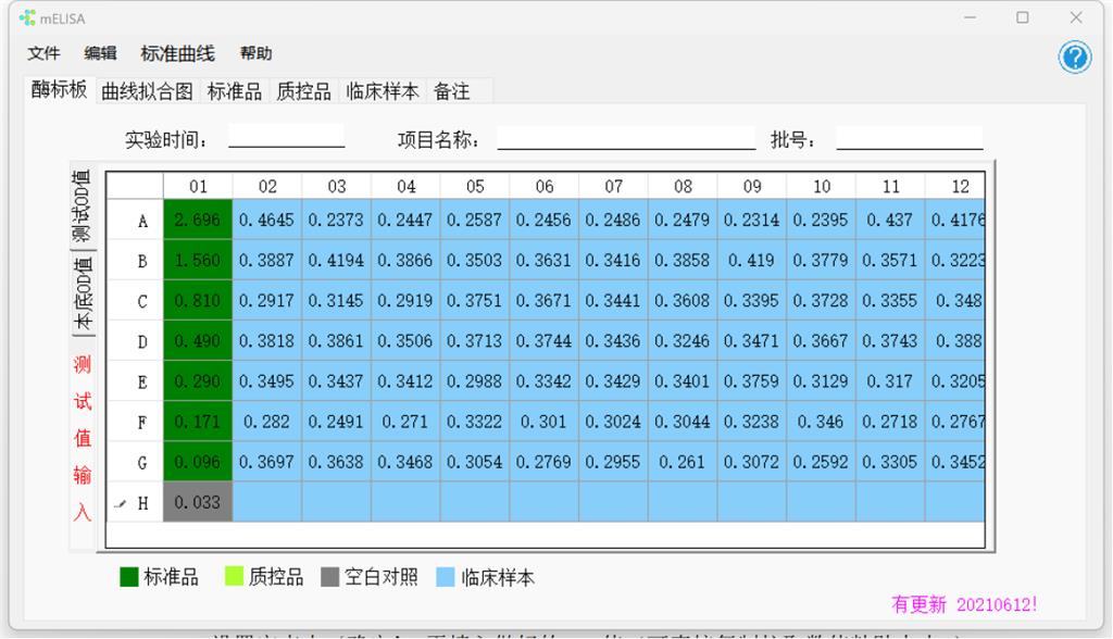 3.設置完點擊‘確定’,再填入做好的OD值(可直接復制拉取數值粘貼上去。)(可以做雙標曲和空白。)
