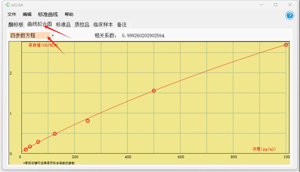 4.點擊‘曲線擬合圖’,選擇‘四參數方程’。